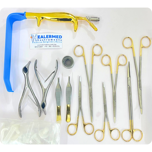 We manufacture complete surgical instrument sets and procedure-based kits tailored for plastic surgery, ENT, orthopedic, laparoscopic, dental, gynecology, and general surgery procedures. Each set can be customized according to surgeon preferences, hospital requirements, and international standards. Our instrument sets are designed to improve workflow efficiency while maintaining high levels of precision, reliability, and surgical safety.